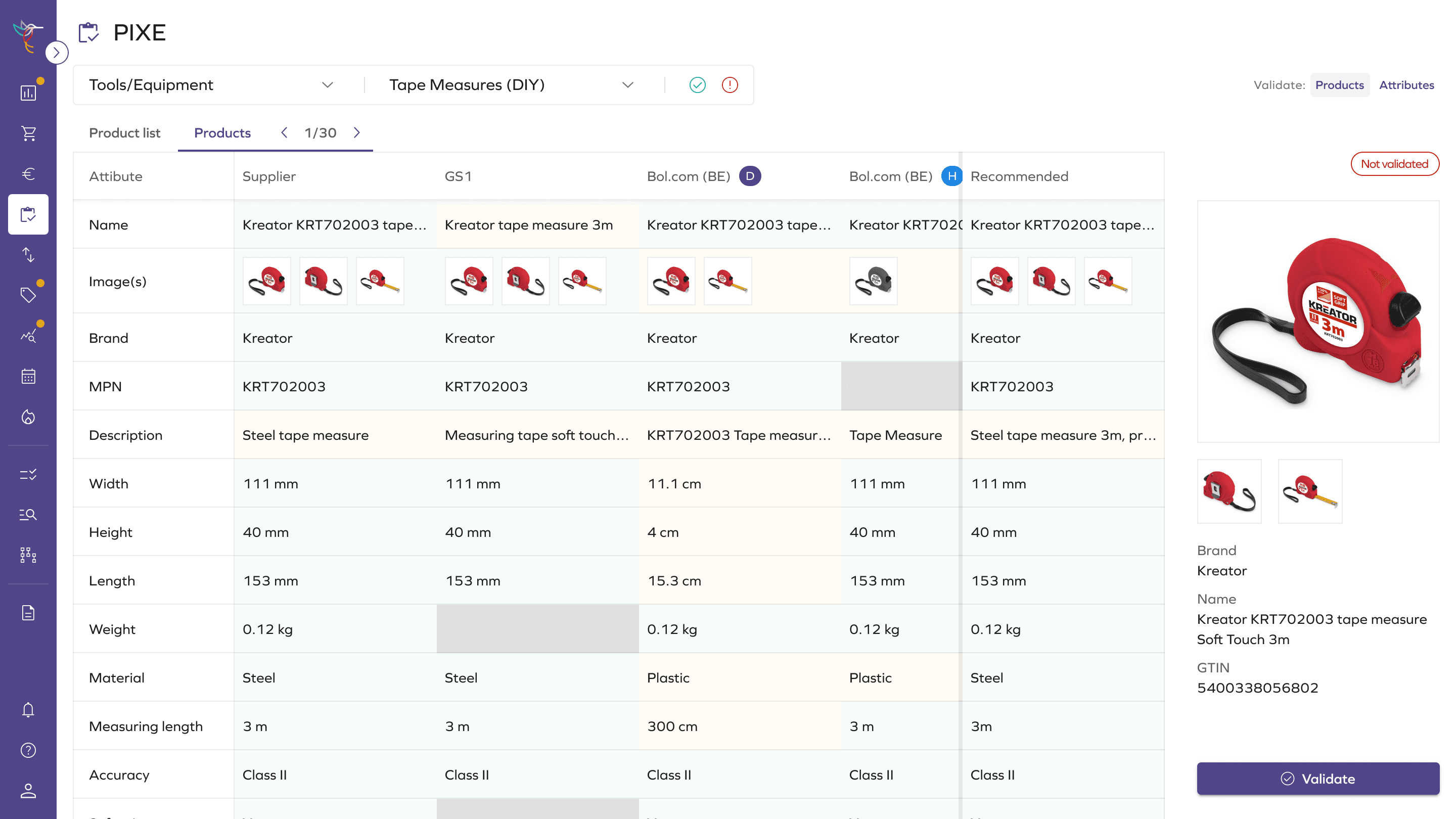 PIXE: product data comparison